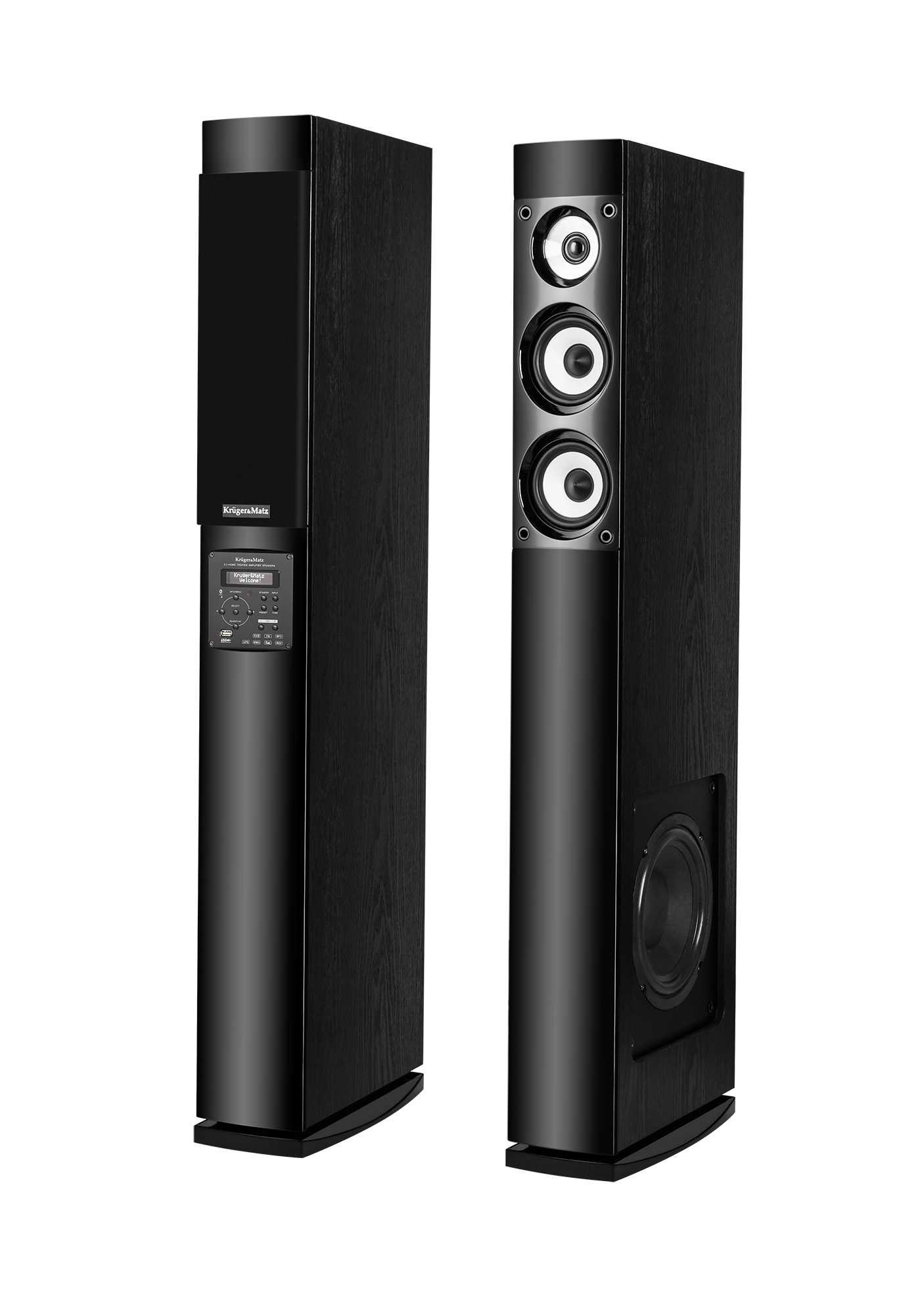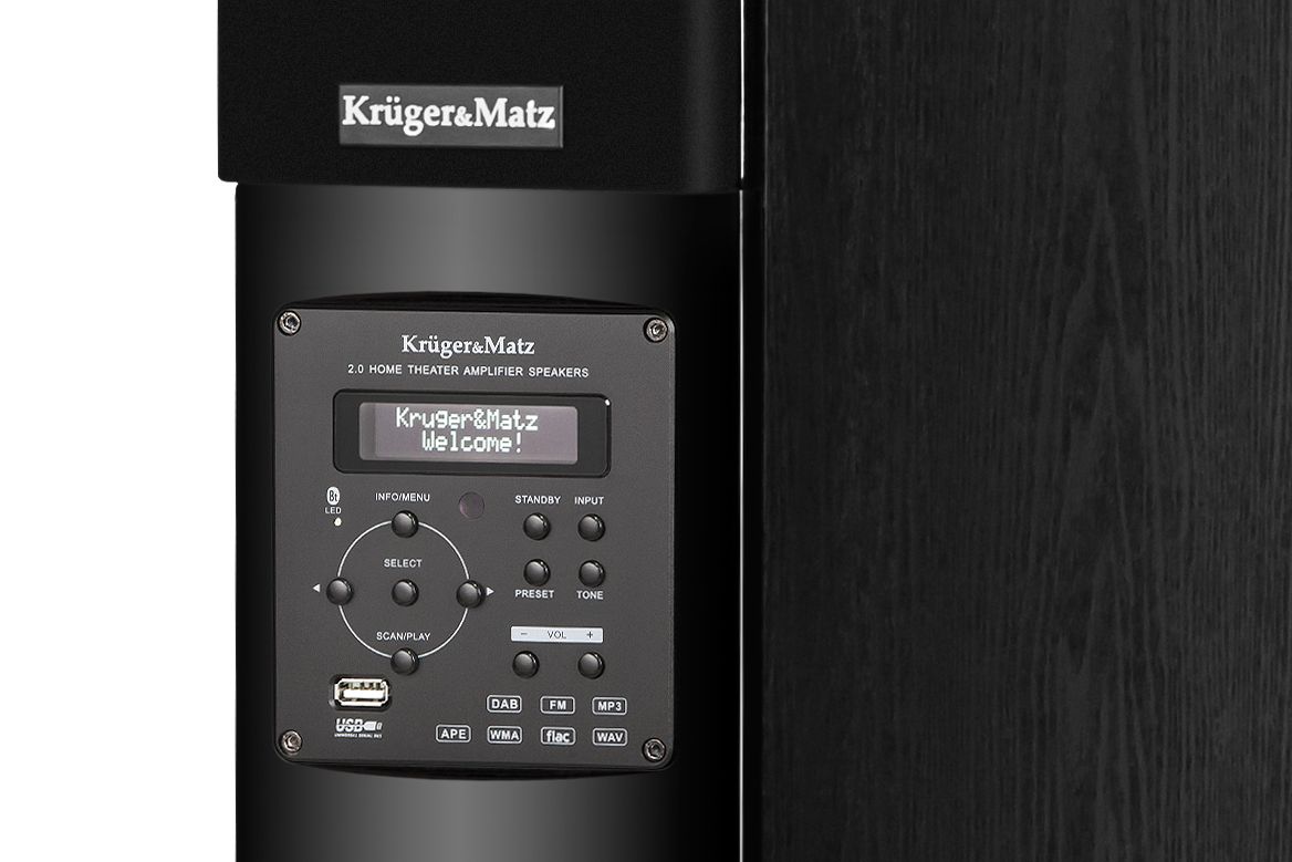 Набір складається з двох 3-смугових динаміків вихідна потужність 2x 60 Вт. На лицьовій частині кожного з них розміщено два 4-дюймові середньочастотні динаміки і 1 дюймовий твітер з неодимовим магнітом і мембраною з високоякісного шовку. Це завершує ціле 8 дюймовий басовий динамік забезпечує винятково глибокий звук. Той факт, що він розміщений збоку від колони, робить його тонким.