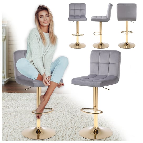 Барний стілець RAFA03-GR-GL , сірий оксамит, золота основа
