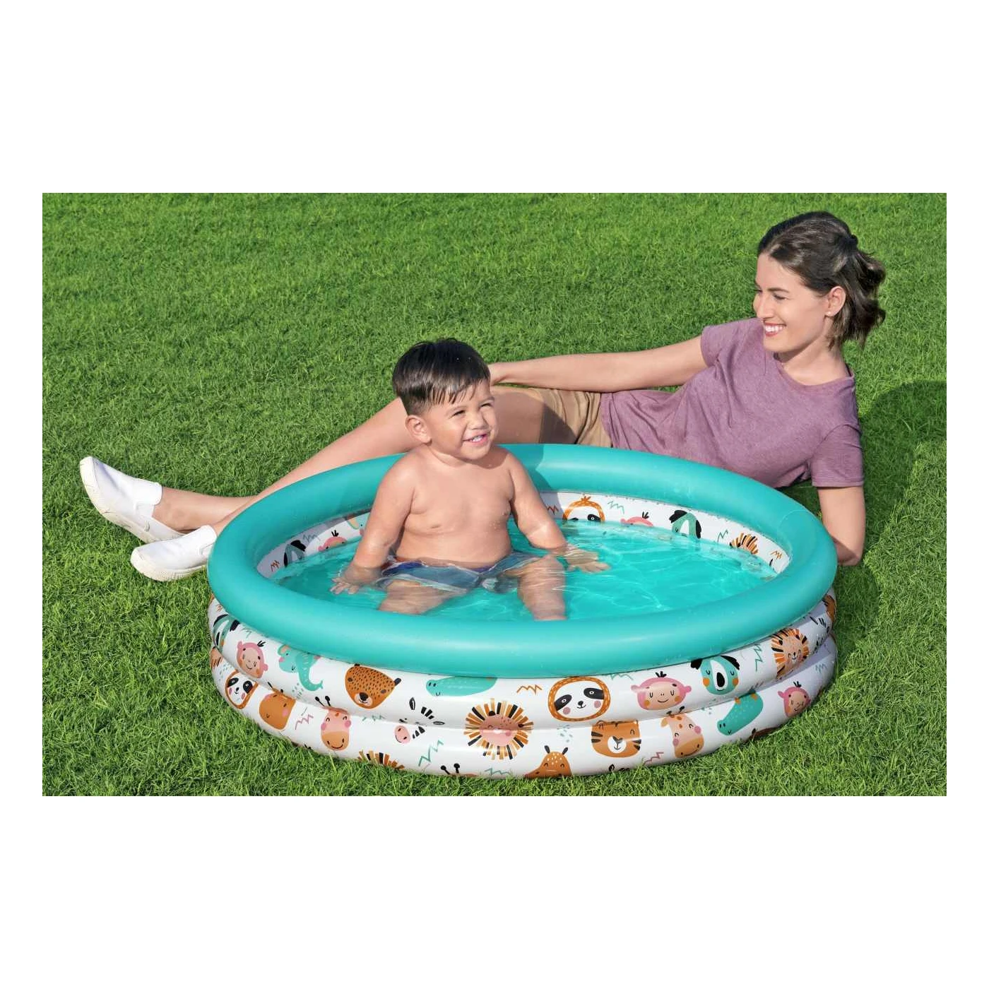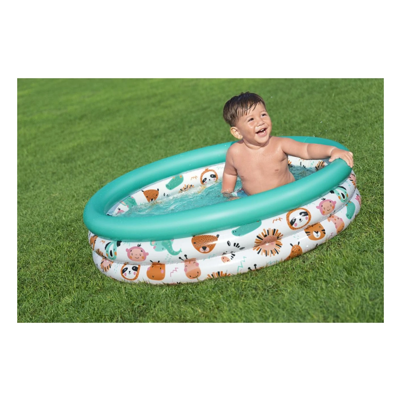 Цей надувний басейн від бренду Bestway — ідеальний вибір для малюків від 2 років! Виготовлений із високоякісного вінілу, він поєднує стійкість, надійність і безпеку, що робить його ідеальним для дитячих розваг. Басейн оснащений трьома надувними камерами, що додають додаткову стабільність, а м’які стінки з широкими бортами забезпечують комфорт під час гри. Жорстке дно із ПВХ-плівки гарантує безпеку та зручність під час купання.