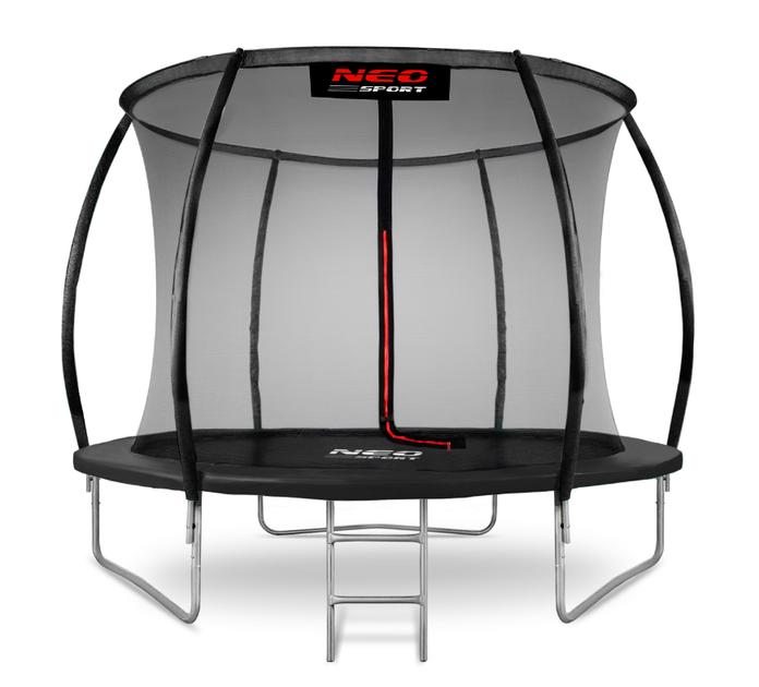 Батут Neo-Sport – це Польський батут. Відмінна якість. Основні характеристики: Заглушки для стійок забезпечують швидке встановлення захисної сітки Внутрішня захисна сітка, прошита у верхній частині для посилення Металеві стійки, покриті м’якою захисною піною Вхід у батут закривається на блискавку та пряжку. Міцний килимок (дубинка) – водостійкий, гнучкий, прошитий 8 разів Оцинковані, оцинковані пружини, закріплені пінопластовим хомутом Подвійні стійкі U-подібні ніжки Оптимальна висота від землі для максимальної безпеки під час стрибків