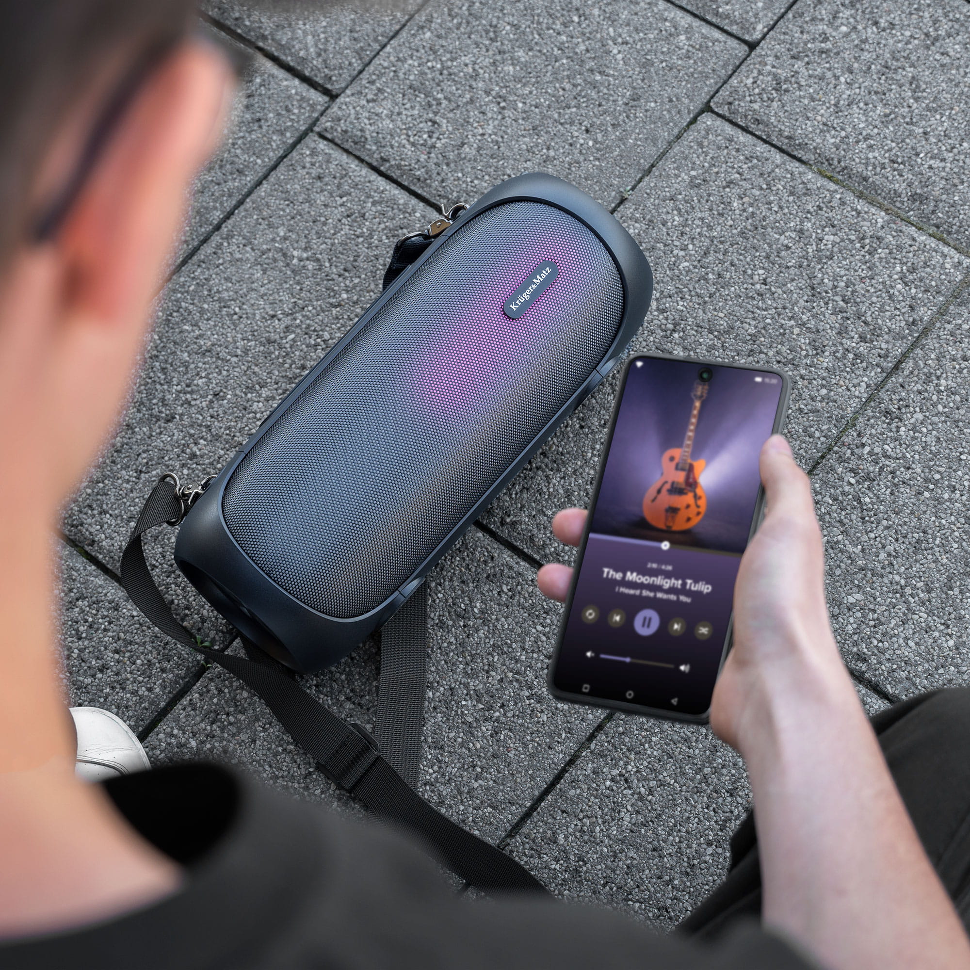 Бездротова колонка Street XL оснащена вражаючим RGB-підсвічуванням, яке створює дивовижну атмосферу та збагачує музичні враження. Ви можете швидко змінити світлові ефекти за допомогою кнопки, розташованої на панелі управління.
