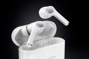 У комплекті: навушники (розмір S, L), кейс з функцією зарядки, USB кабель, інструкція користувача