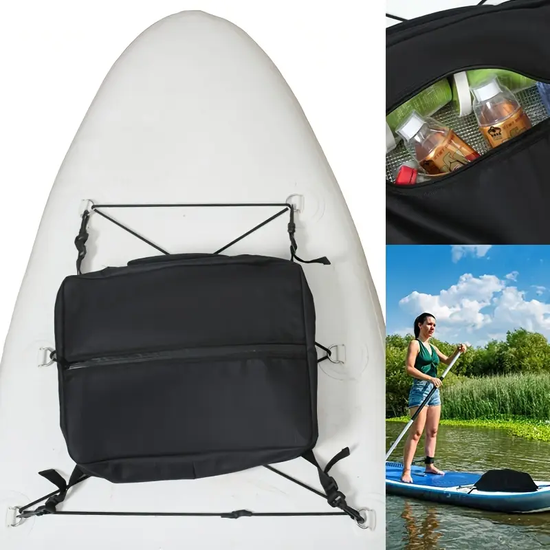 Чорна сумка для SUP об’ємом 10 літрів з регульованими ремінцями – портативний організатор для зберігання SUP-дошки та серфбордів, ізоляція для пляжу, басейну та відкритих видів спорту, сумка для палуби, аксесуар для басейну, стильний дизайн, безпечна застібка на блискавці.