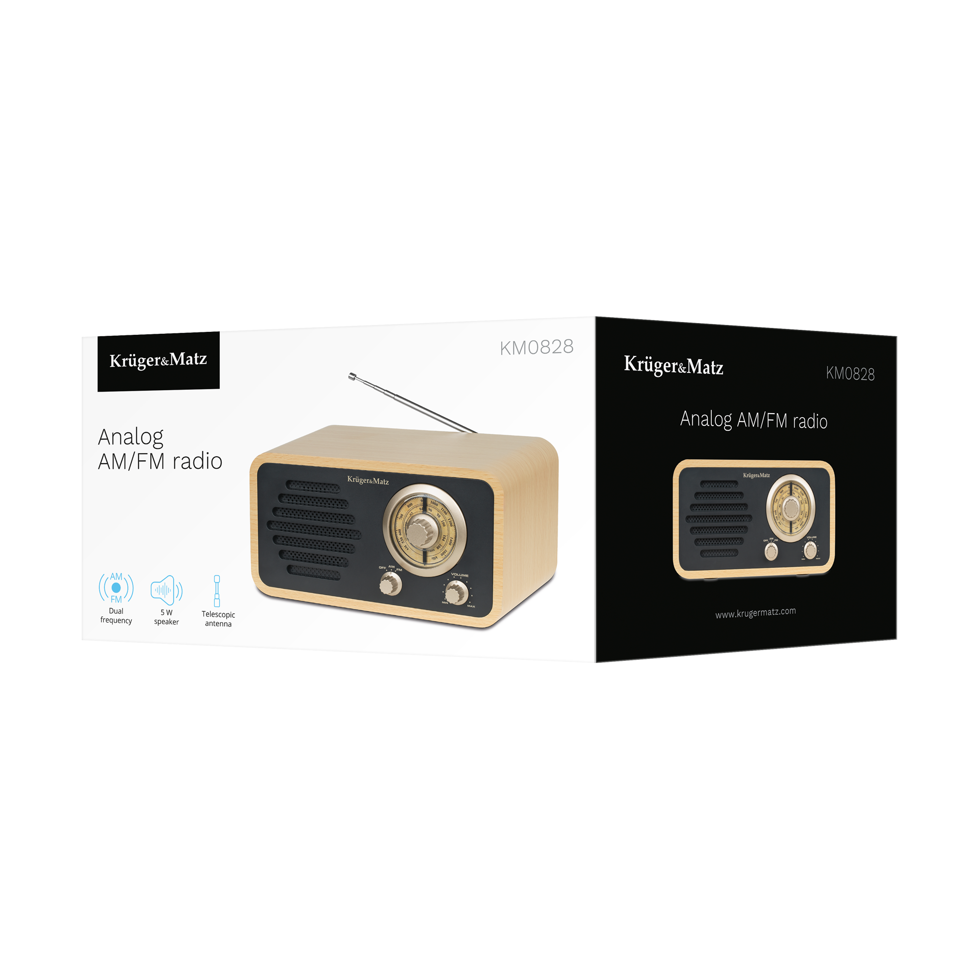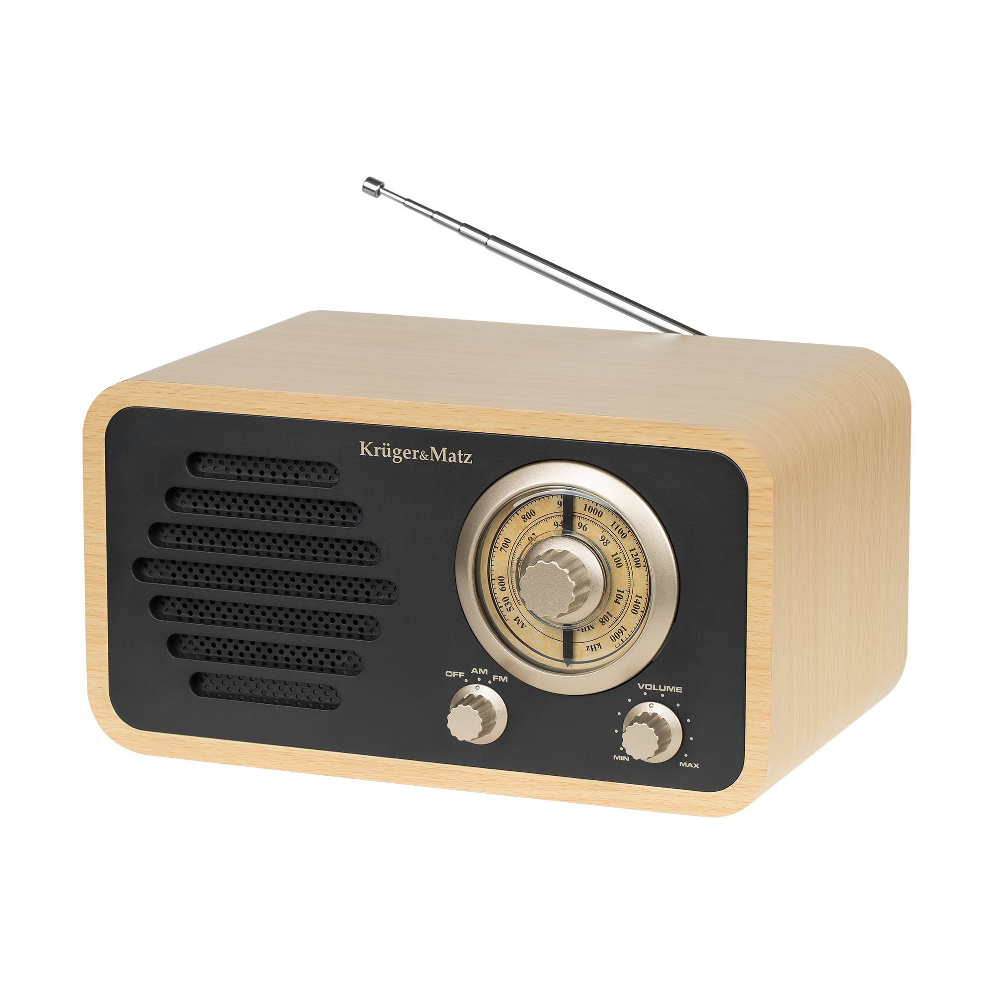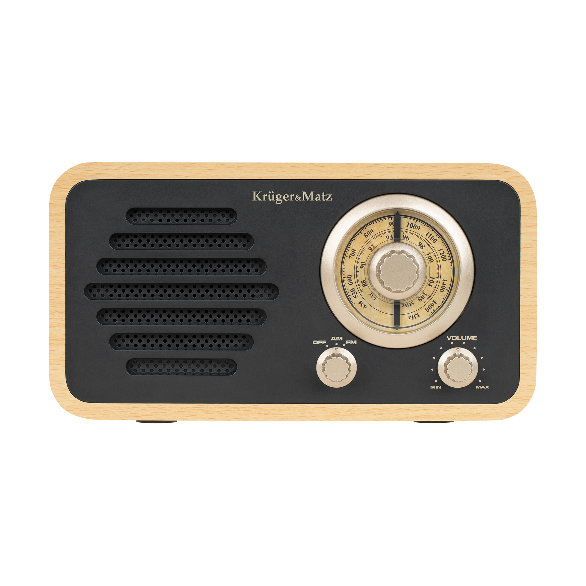 Радіо Kruger&Matz вражає своїм унікальним стилем. Дерев’яний корпус у поєднанні з чорною передньою частиною та золотими ручками створює елегантний ретро-вигляд. Така конструкція ідеально впишеться як в класичний, так і в сучасний інтер’єр, ставши його унікальною прикрасою.