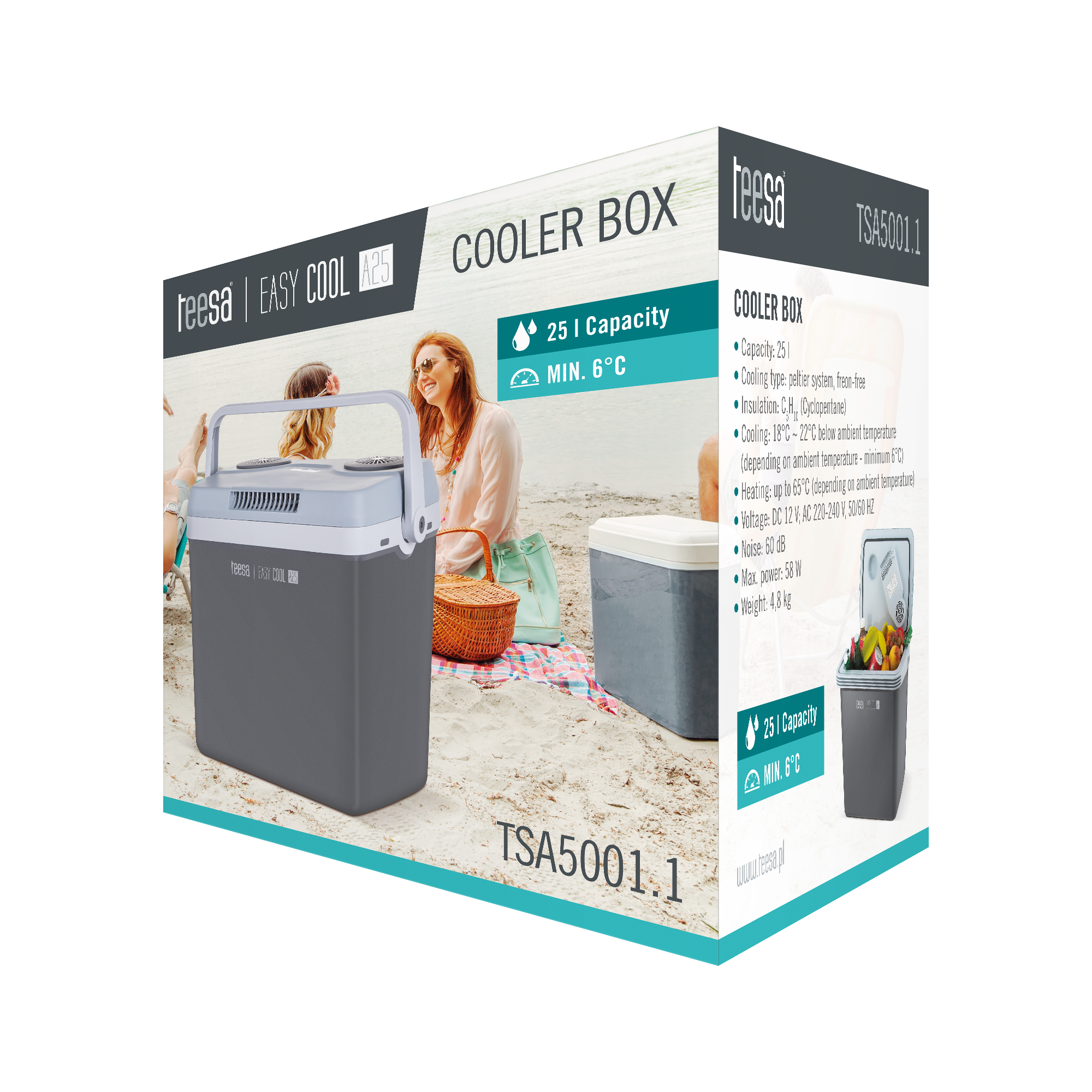 Ви думаєте, який туристичний холодильник купити? Teesa EASY COOL A25 – ідеальний продукт як для спекотних літніх днів, так і для зимових подорожей. Він дозволяє, залежно від зовнішніх умов, охолоджувати їжу до 6°C або розігрівати до +65°C. Тому це ідеальний пристрій для охолодження їжі під час літнього пікніка, а також для зберігання гарячих напоїв під час зимових розваг.