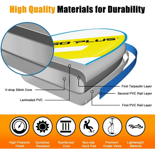 Хочете спробувати новий водний вид спорту з друзями? Ця надувна дошка для веслування (її також називають SUP-дошкою) може розважити вас у воді цього літа. Виготовлена з подвійного шару ПВХ і V-точок, дошка міцніша і довговічніша, служить довго, не деформуючись.
