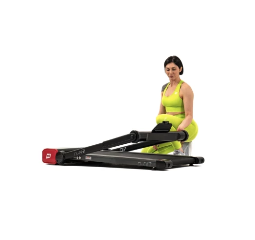Складана бігова доріжка Clip використовує 5-шарове бігове полотно розміром 40/120 см . Він забезпечує відмінну стабільність і зчеплення під час бігу, а протиковзкі рейки з обох сторін дозволяють безпечно зістрибнути з бігової доріжки в екстрених ситуаціях. Загальна вантажопідйомність пристрою становить 130 кг .