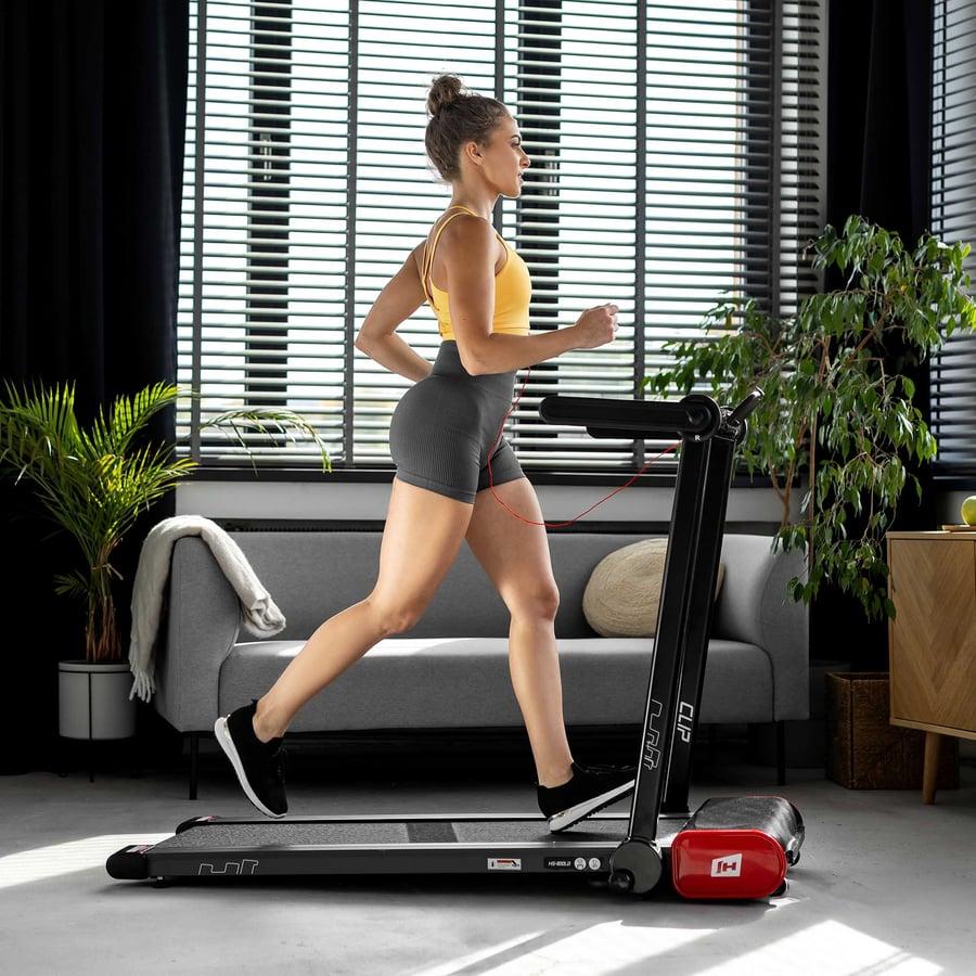 HS-900LB Clip — це компактне фітнес-обладнання, висота якого в складеному стані становить лише 22 см . При необхідності його можна зручно перенести в іншу кімнату завдяки вбудованим транспортувальних роликам . Бігова доріжка Clip особливо рекомендована для невеликих кімнат.