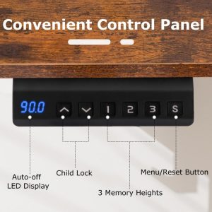 Елементи керування Smart Desk : зручна панель керування оснащена світлодіодним дисплеєм, 3 настроюваними параметрами пам’яті та кнопкою меню/скидання для зручності роботи. Стіл налаштовується відповідно до особистих уподобань користувача одним натисканням кнопки.