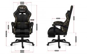Оздоблення матеріалу з камуфляжним малюнком додає стільцю не тільки ігровий, але й військовий стиль. Вони також дуже практичні, оскільки матеріал Camo міцний і його легко підтримувати в чистоті.