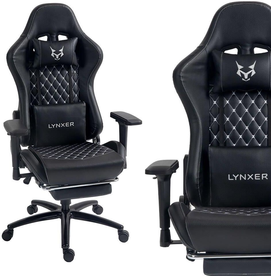 - Додаткова підтримка у вигляді регульованої поперекової подушки і підголівника з логотипом LYNXER, які допомагають підтримувати правильну поставу тіла, знижуючи втому і біль у спині.