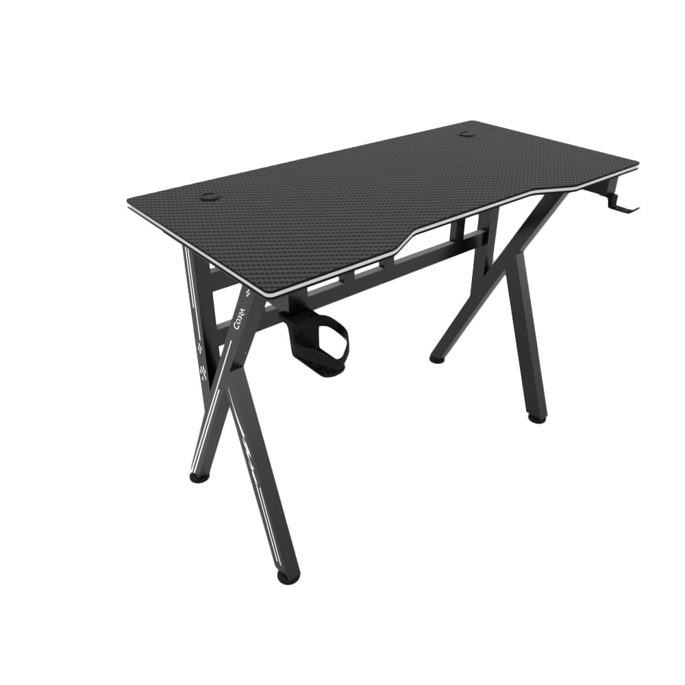 Стіл COBRA CR2009BK є ідеальним рішенням для геймерів. Компактні розміри дозволяють розмістити його в невеликих приміщеннях, а функціональні рішення, такі як тримач для навушників і чашки, роблять його зручною ігровою станцією. Два отвори для кабелів дають змогу організувати кабелі, що надзвичайно важливо для професійних геймерів.