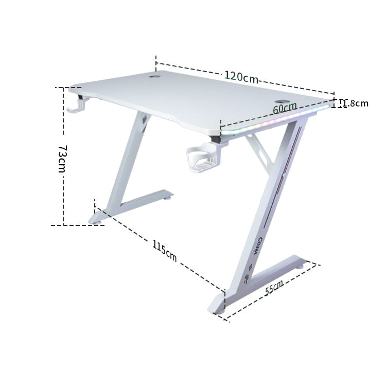 Відкрийте для себе ідеальний ігровий стіл, ідеальний для геймерів будь-якого рівня кваліфікації! Наш стіл завдовжки 120 см поєднує в собі функціональність і елегантність, пропонуючи тримач для напоїв і гачок для навушників, щоб забезпечити максимальний комфорт і зберегти речі в порядку. Розроблений з урахуванням геймерів і оснащений практичними отворами для кабелю, цей стіл усуває безлад і забезпечує ідеальну організацію ігрового простору. Інвестуйте в рішення, яке не тільки покращить ваш ігровий процес, але й додасть стилю вашому ігровому куточку
