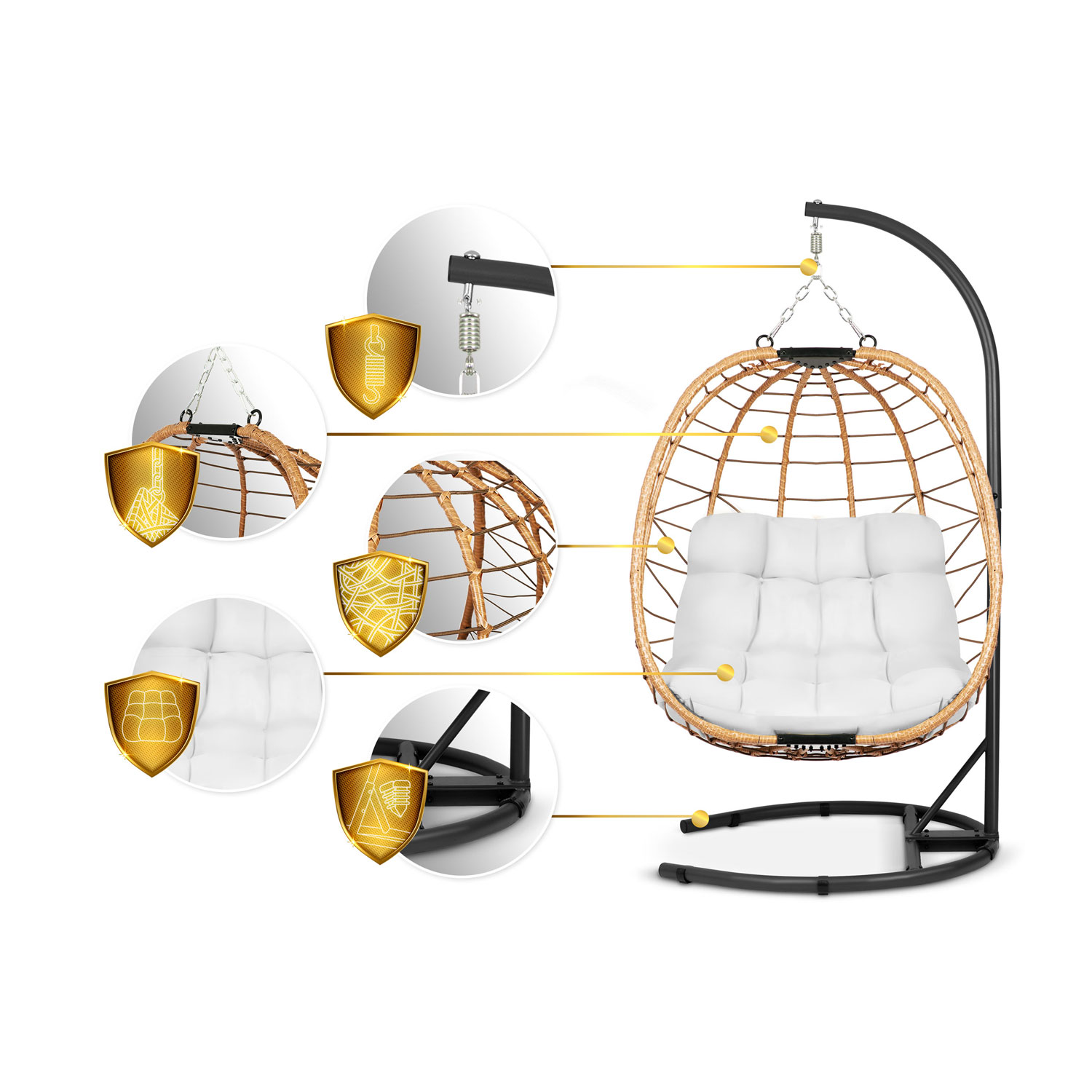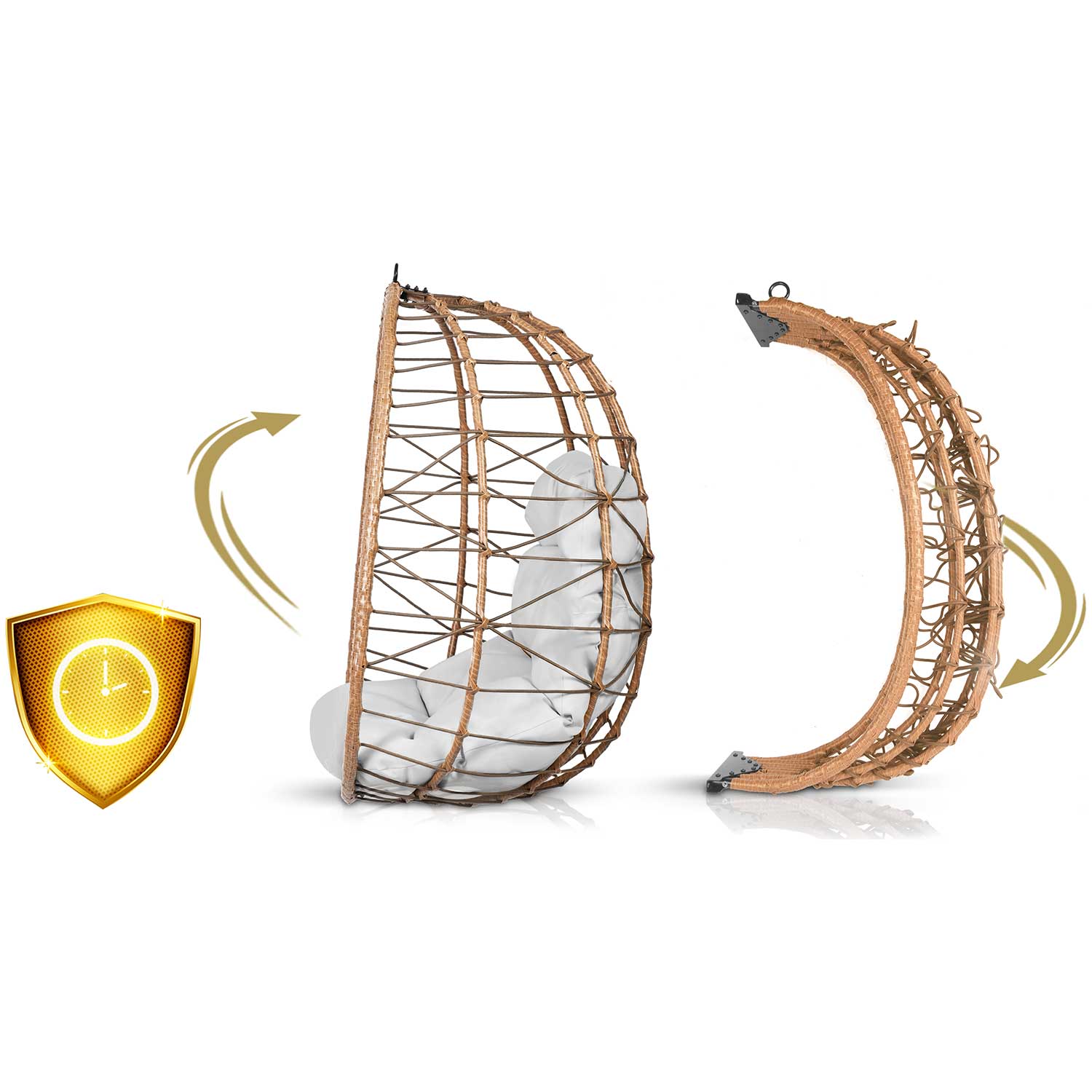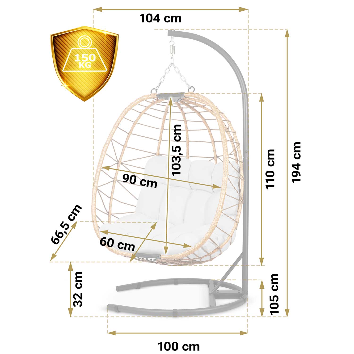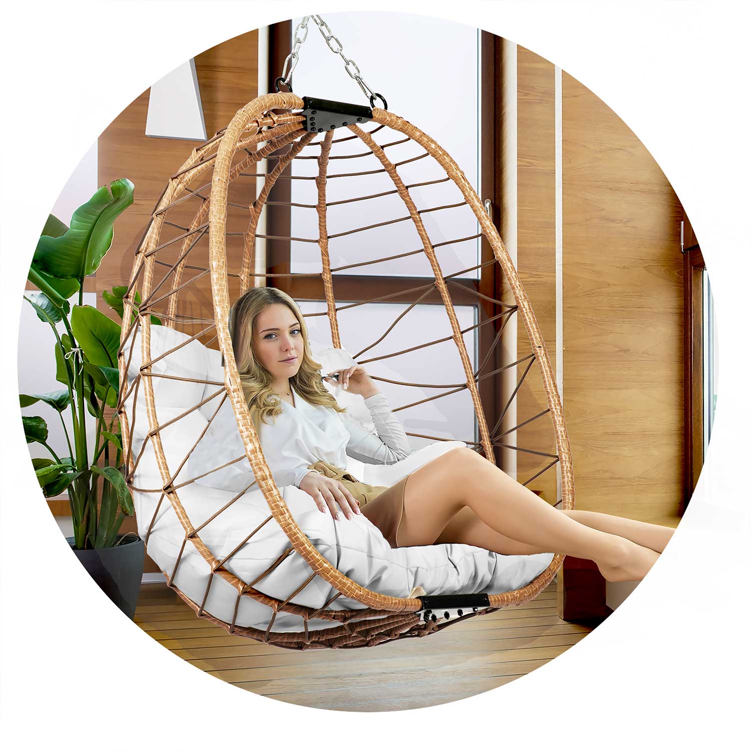 - Міцний кошик – сталева рама з плетінням із техноротангу, стійкого до вологи та пилу.