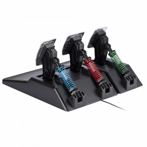 У набір входять педалі газу, гальма і зчеплення, оснащені датчиком Холла, який гарантує змінний тиск і виняткову точність роботи. Можливість регулювання тиску дозволяє налаштувати роботу педалей під свої індивідуальні переваги, що значно підвищує реалістичність водіння. Міцна конструкція та можливість кріплення до столу забезпечують стабільність навіть під час найінтенсивніших перегонів.