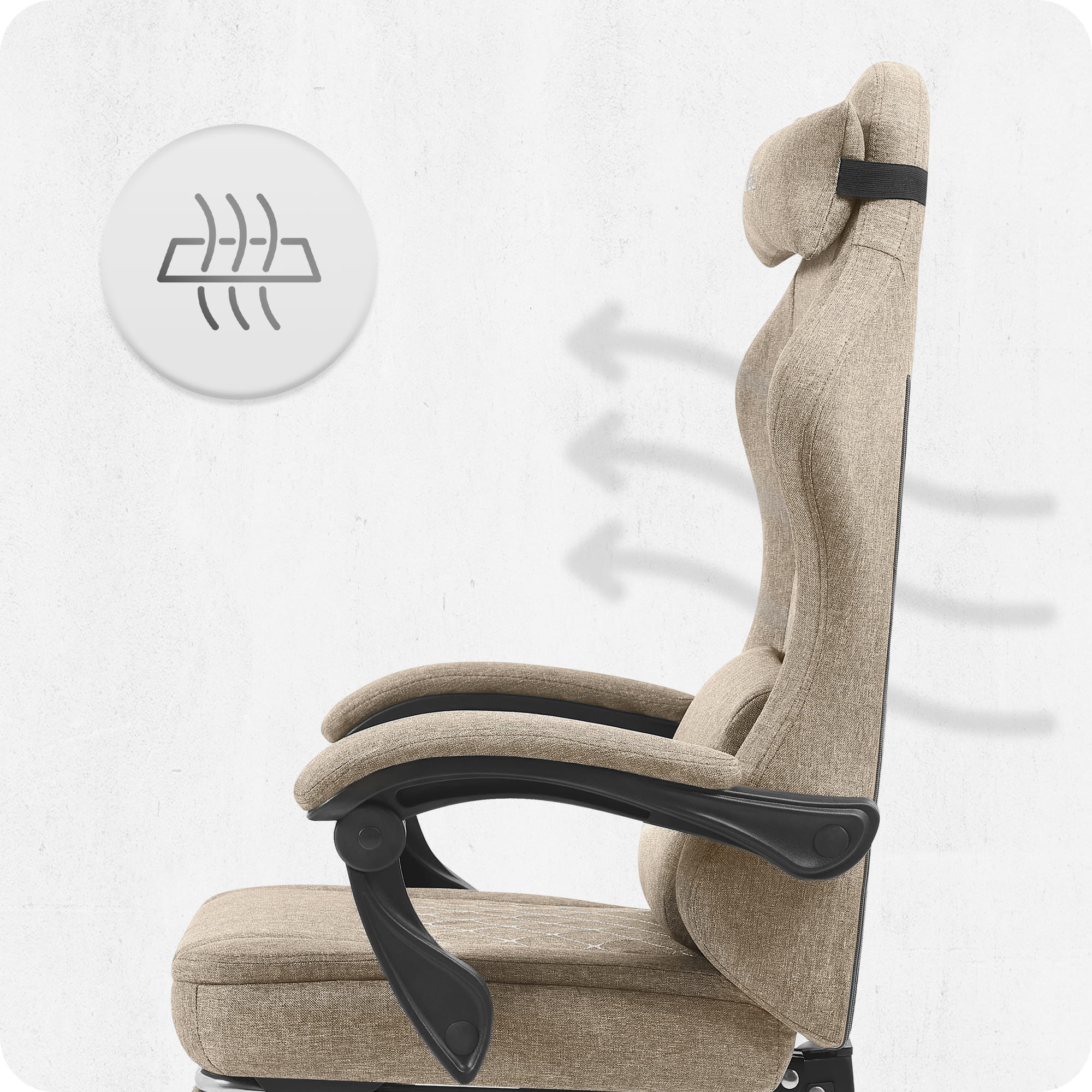 Контурна поперекова опора, підтримка шиї та голови допомагають підтримувати правильну поставу та зменшують біль у спині. Подушки регулюються , а наповнювач можна замінити.