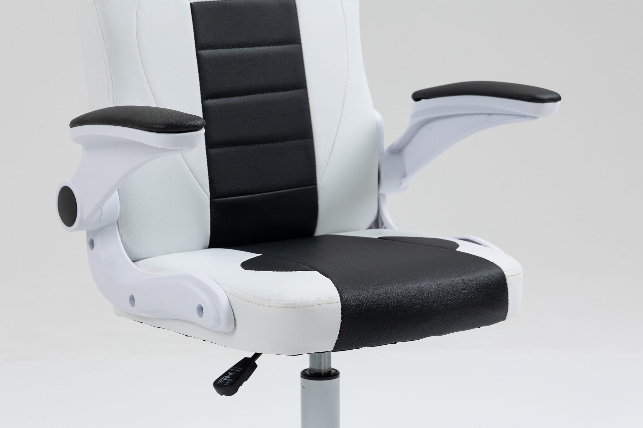 Глибина сидіння: 33 см. Додаткова інформація: губка з високим відскоком, нейлонова основа. Колір: чорний, білий кг Максимальний кут нахилу спинки: 90 градусів; Матеріал оббивки: шкіра ECO; Модель: Cobra Junior; Підходить до керма: 1D; Рекомендована висота (мінімум): 100 см; Тип: дитяче крісло; Ширина спинки: 41 см; Сидіння: 38 см; Комплектація: Загальна висота: 90 – 100 см; Висота спинки: 50 см