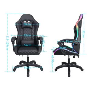 Відкрийте для себе новий вимір гри з нашим вдосконаленим кріслом, яке не тільки забезпечує комфорт, але й створює надзвичайну атмосферу завдяки RGB-освітленню, керованому за допомогою пульта дистанційного керування. Уявіть собі гру, в якій кожна мить оживає завдяки кольоровим світловим ефектам, ідеально синхронізованим із дією на екрані. Це крісло більше, ніж просто сидіння, це справжній командний центр для кожного молодого гравця.