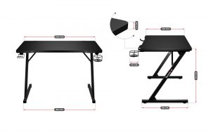 Стільниця з міцної МДФ плити забезпечує довговічність і стійкість навіть під сильним тиском. Верхня частина ігрового столу Huzaro покрита високоякісним матовим чорним ламінатом, що робить робочий стіл міцним, практичним і чудово виглядає. Він легко витримує навантаження від щоденного використання.