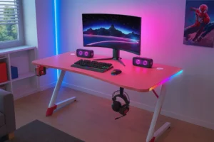 Ігровий комп’ютерний стіл для геймерів Сучасний світлодіодний 120 см рожевого кольору