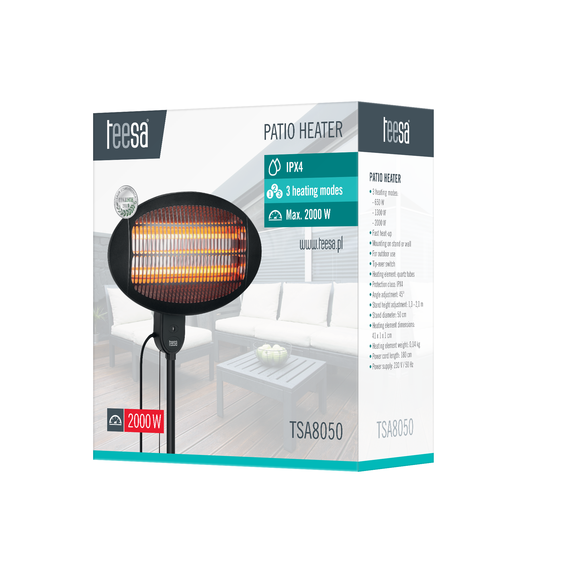 Ви любите проводити вільний час на балконі чи терасі? Подбайте про те, щоб ніщо не порушувало ці моменти навіть у холодні вечори. Електропроменевий обігрівач Teesa з вибором трьох режимів нагріву стане ідеальним рішенням для вас. Завдяки швидко нагріваються трубкам з кварцового скла, досить увімкнути обігрівач і ви одразу відчуєте, як навколо розливається приємне тепло.