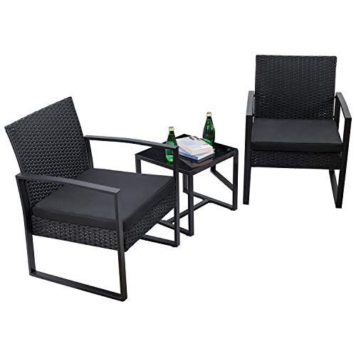Комплект садових меблів VELACO COMO-BL з техноратангу — Чорний 3-предметний набір для компактних зон відпочинку