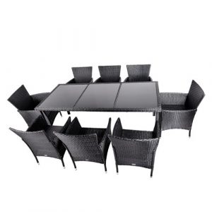 Комплект садових меблів SANTOS на 8 місць з ротанга, чорний, скло, чорний