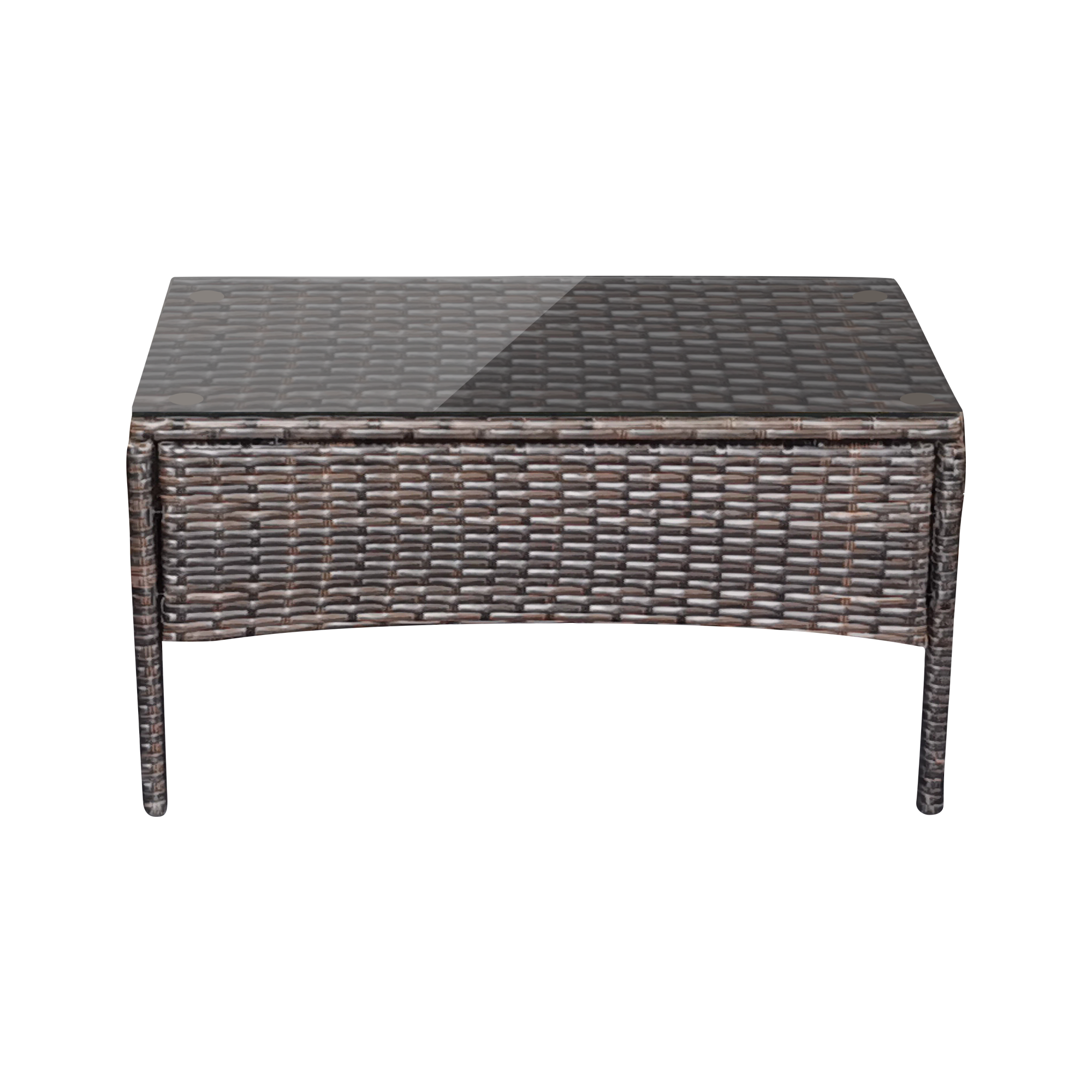 Завершує пакет садові меблі стіл з техноротангу. Він має це міцна конструкція і досить велика поверхня для розміщення напоїв, закусок і прикрас. Ви можете вільно використовувати його під час кави з другом або сімейного післяобіднього чаю.
