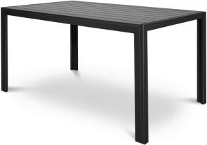 - 1 садовий стіл розміром 150 x 90 x 75 см, з порошково пофарбованою сталевою рамою та стільницею з композитної дошки під дерево,