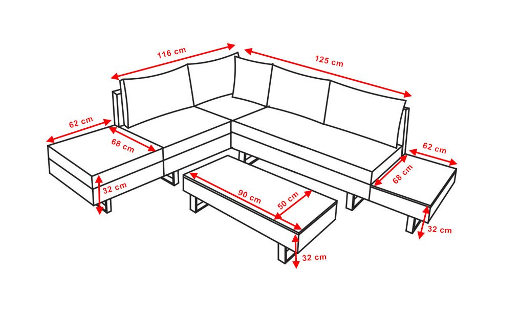 Розміри дивана: [довжина х ширина х висота]: 116 х 68 х 65 см