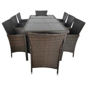 Комплект садових меблів SANTOS на 8 місць з ротанга, коричневий, чорний, скло