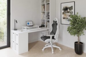 І ви можете легко це зробити за допомогою пневматичного підйомника, який регулює положення стільниці та полиці конвертера. Доступний діапазон становить 12,5-49 см, рахуючи від стільниці, на якій лежить конвертер. Це дає вам повну свободу налаштувати бажане положення під час роботи, навчання чи гри. Стоячи чи сидячи, як вам зручніше в даний момент.