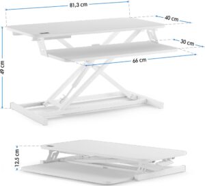 Це, безумовно, найпростіший спосіб перетворити класичний стіл на стоячу модель. Додатковою перевагою є сучасний вигляд самого конвертера та той факт, що він не займає багато місця на стільниці, на якій стоїть. Ви все ще можете використовувати вільний простір для власних потреб. Ми рекомендуємо його для всіляких потреб, як вдома, так і в офісі.