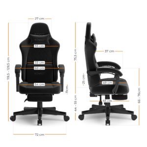 Крісло має сидіння шириною 54 см з 10-сантиметровим шаром високоякісної піни. Це забезпечує чудову підтримку стегон і тазостегнових суглобів, а також м’яке та пружинисте відчуття, якого немає в типових офісних кріслах.