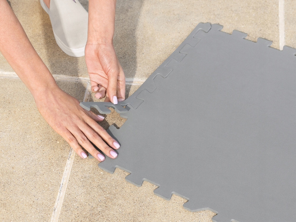 Килимок виготовлений з міцного матеріалу, який забезпечує додатковий захист SPA і поверхні, на яку він розміщений.
