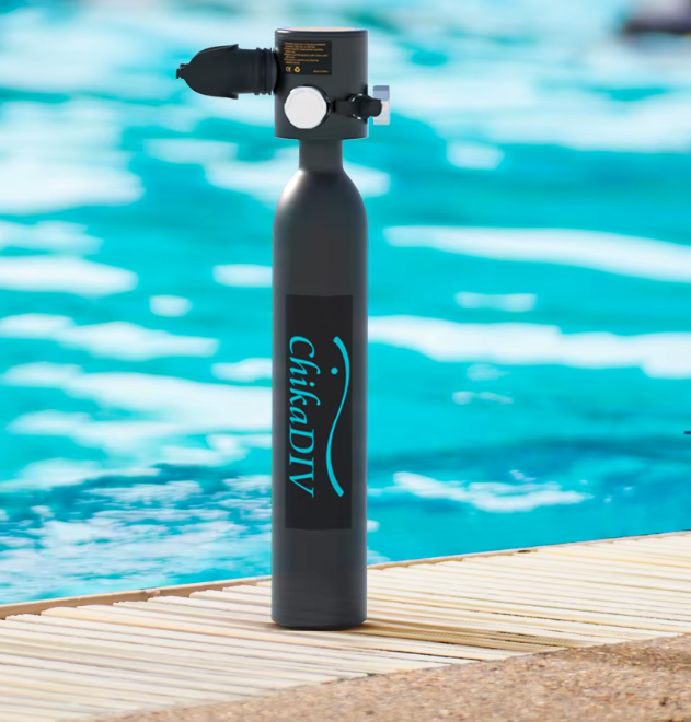 Резервуар для підводного плавання ChikaDiv 0,5 л забезпечує 5-10 хвилин повітря. Ідеальний розмір пляшки діаметром 6 см дуже підходить для носіння в дорозі. Крім того, міні-циліндри для занурення також дуже підходять для підводних досліджень, чищення човнів, екстреного порятунку, резервних джерел повітря тощо. (Примітка: глибина занурення, температура та частота дихання впливають на час використання циліндра.)
