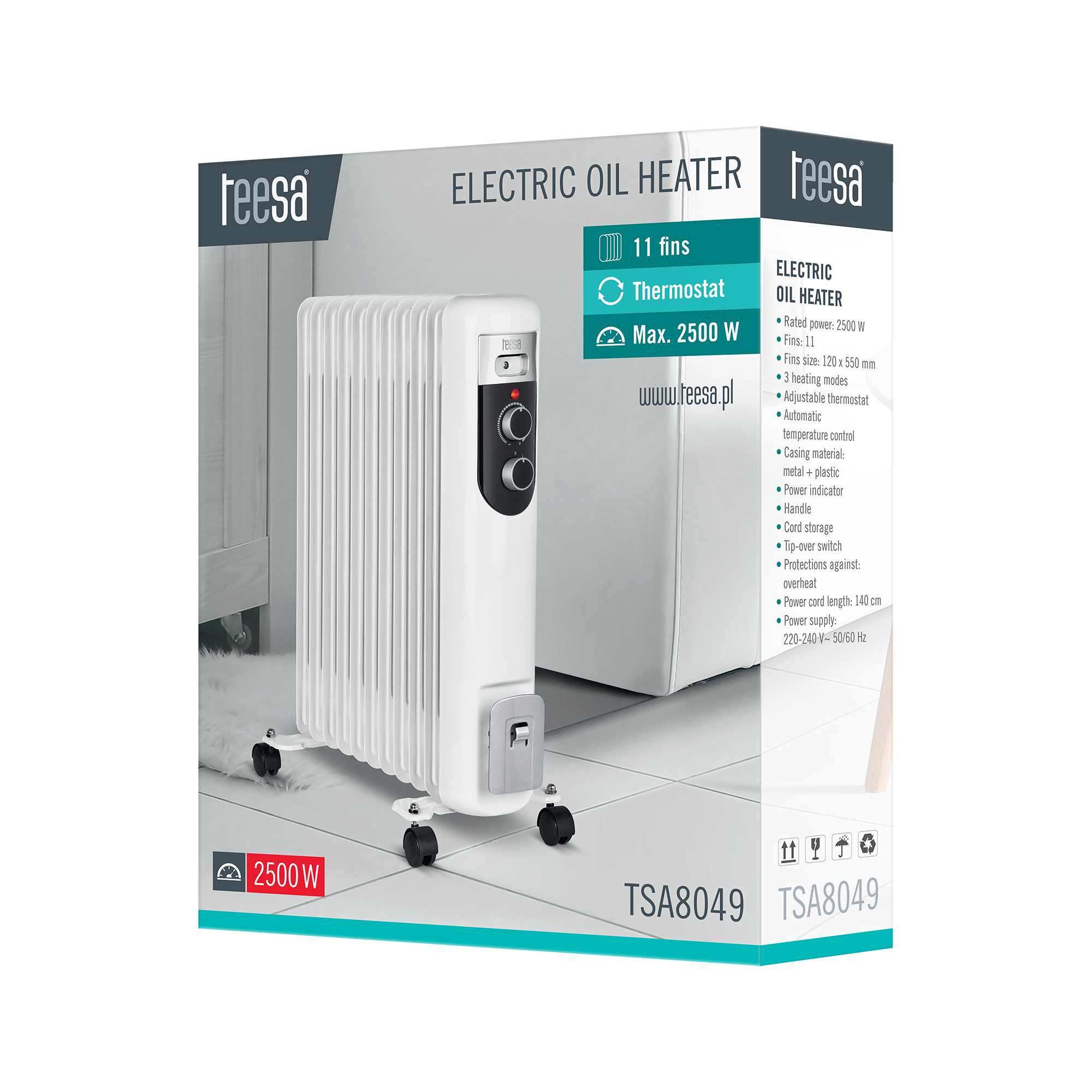 Якщо ви не хочете постійно змінювати налаштування температури, виберіть масляний радіатор з термостатом– такою моделлю є переносний радіатор TSA8049. Крім три режими нагріву, пристрій має автоматичний контроль температури , тож ви зможете не лише налаштувати умови в кімнаті відповідно до своїх потреб, але й забезпечити постійну підтримку обраної вами температури.
