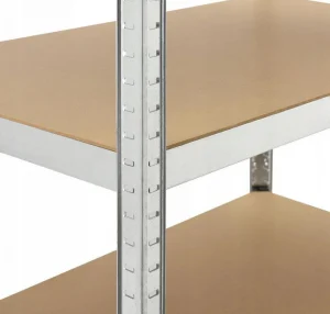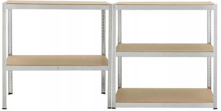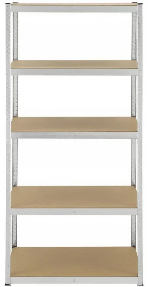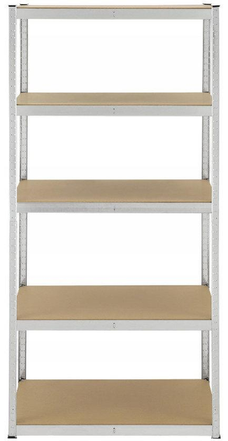 Стелаж складається з 5 полиць, на яких можна розмістити продукти, коробки або прилади, з максимальним навантаженням до 200 кг на кожну полицю.