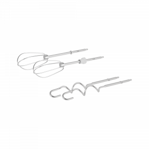 допоможе вам ідеально розтерти яйця і масло з цукром, замісити хлібне тісто або крем для торта. Все завдяки віночкам і міксерам, що входять в комплект, які можна легко замінити за допомогою кнопки розблокування, розташованої на корпусі міксера.