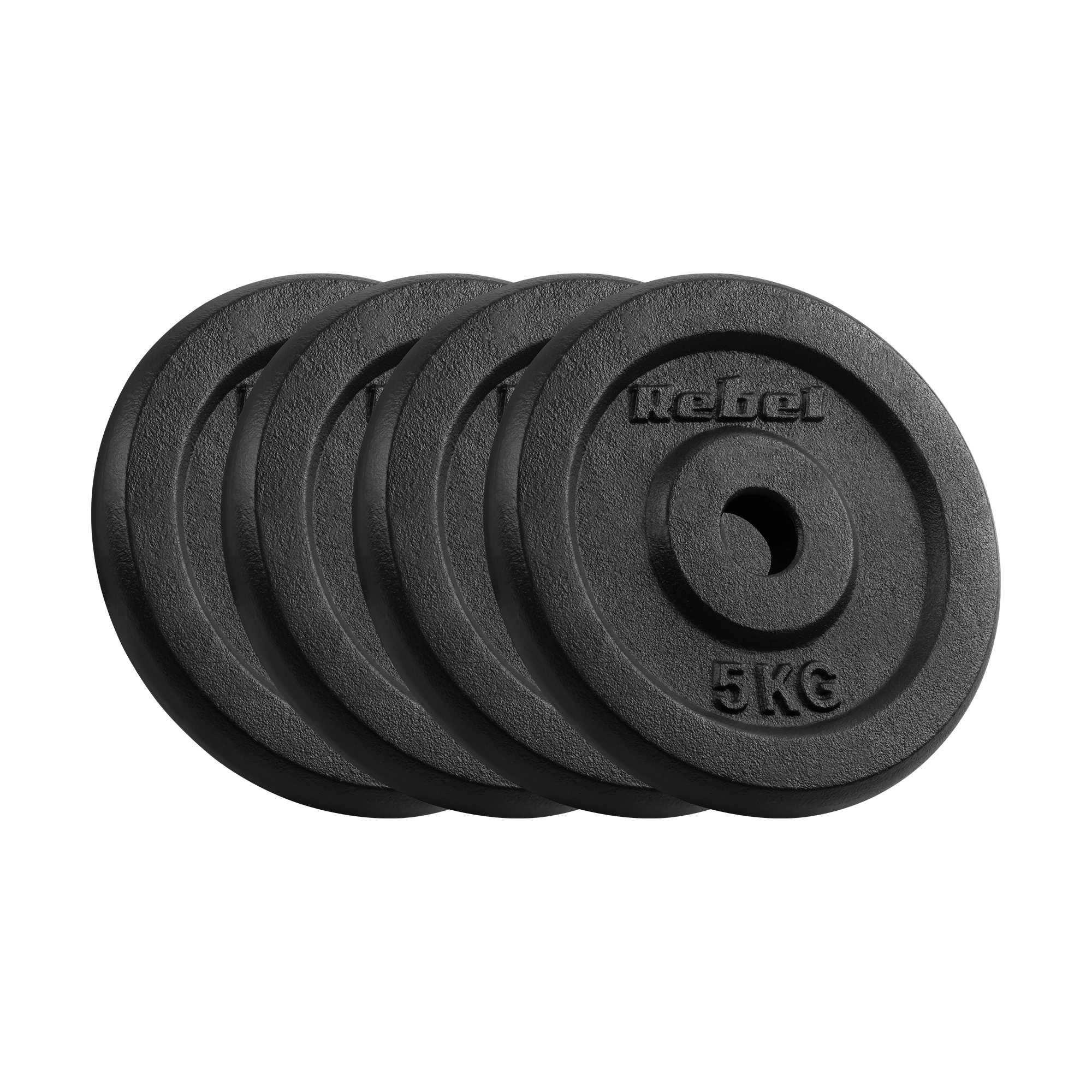 Набір чавунних обважнювачів Rebel Active складається з 4 пластин вагою по 5 кг кожна, тому ви можете легко підлаштувати тренування під власні можливості. Це ідеальне рішення для зміцнення м’язів або інтервальних тренувань як для новачків, так і для більш просунутих людей.