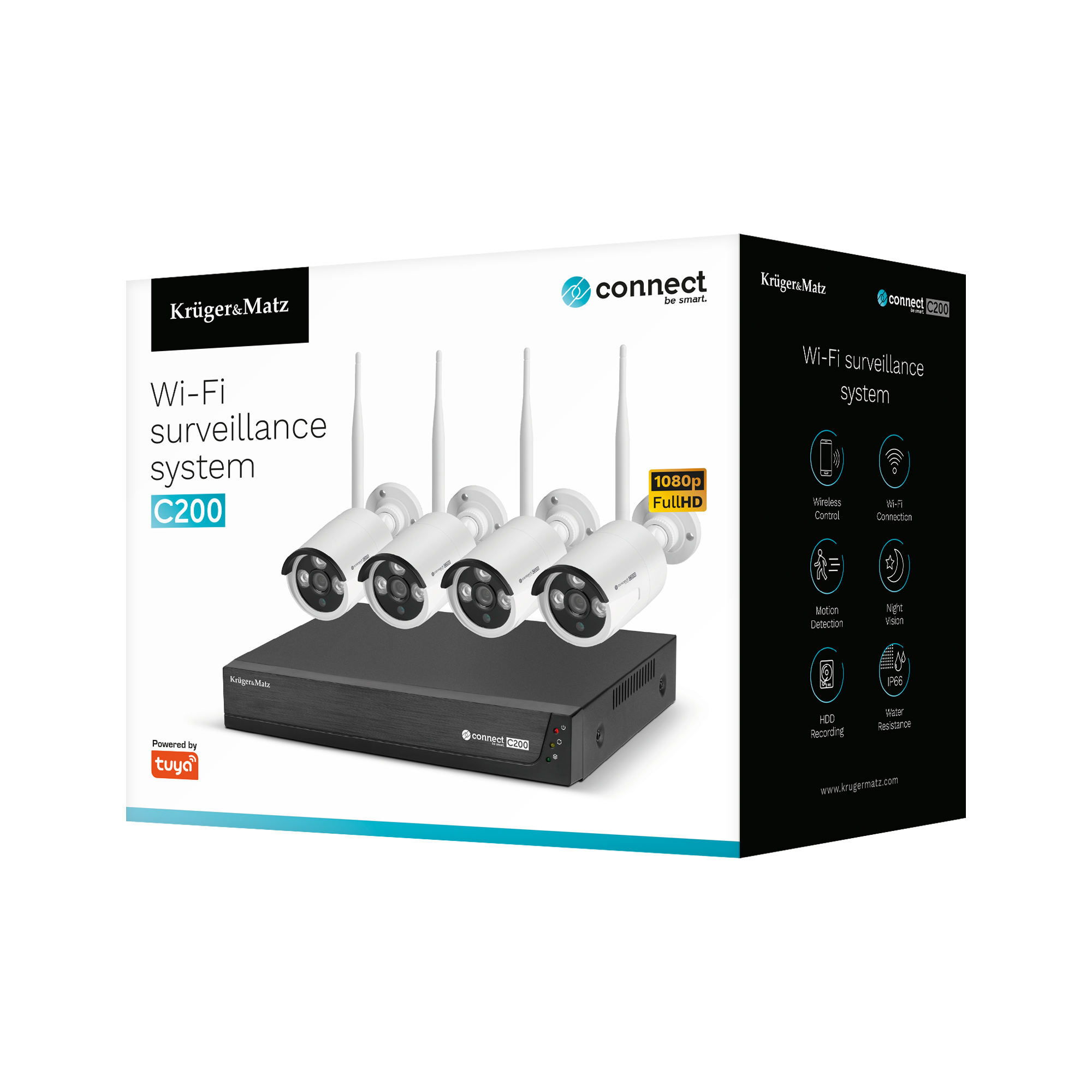 Записувач, що входить у комплект, підтримує накопичувачі максимальною ємністю 4 ТБ. Цієї ємності вистачить на місяць високоякісних записів у форматі Full HD. Завдяки системі моніторингу Kruger & Matz Connect C200 ніщо не вислизне від вашої уваги.