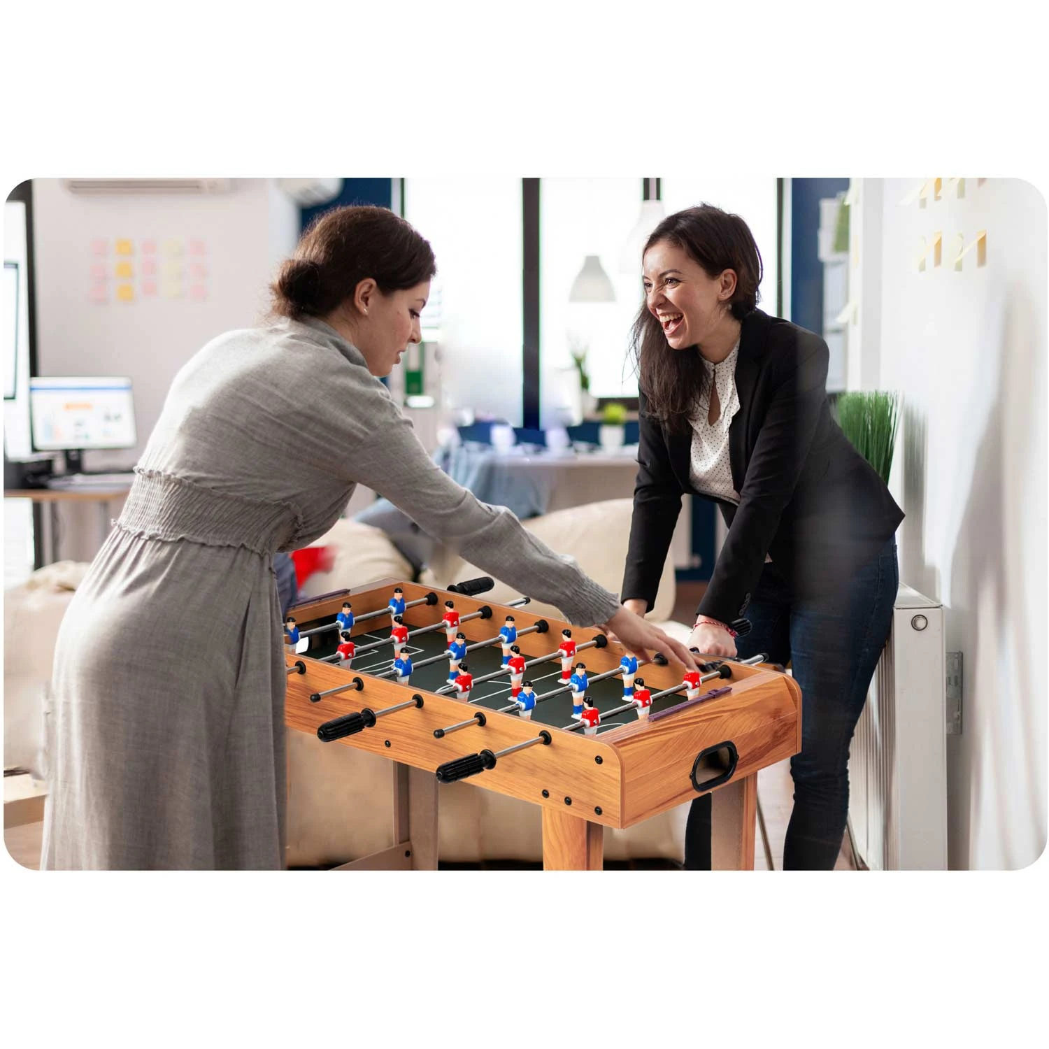 Про класичні ігри та заняття можна точно сказати одне: вони вічні. Культовий настільний футбол відомий, мабуть, усім, а ті, хто мав нагоду пограти в нього, із захопленням згадують кожен зіграний матч і забитий гол. Вдома, в школі, в гуртку? портативний міні-настільний футбол принесе багато захоплення та веселощів всюди. Ця партійна гра ніколи не набридне!