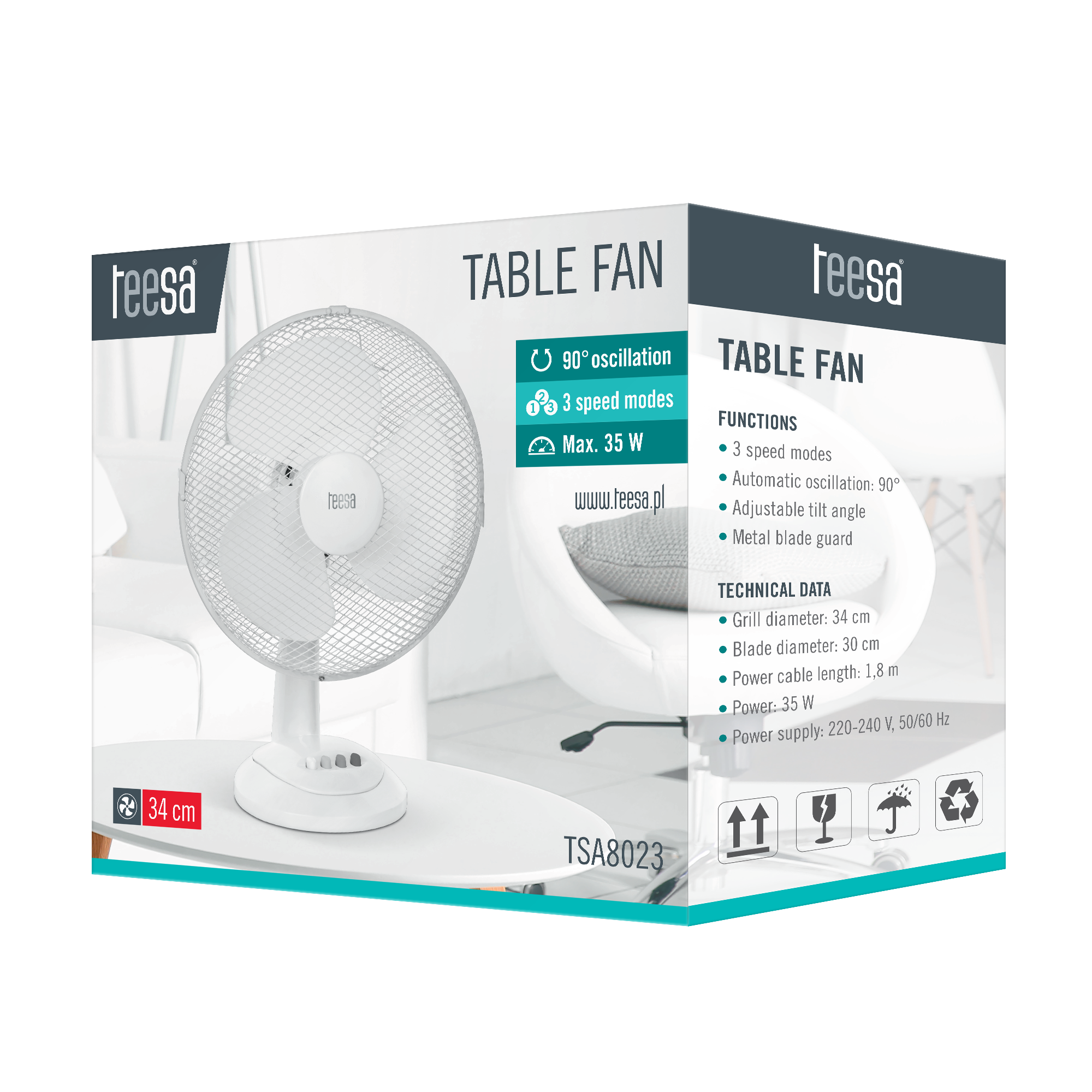 До переваг приладу, безумовно, можна віднести автоматичне коливання і можливість зміни кута нахилу. Вентилятор Teesa також означає безпеку завдяки металевій кришці, яка оточує пропелери пристрою. Спробуйте сьогодні та відчуйте подих прохолодного повітря у спекотні дні!