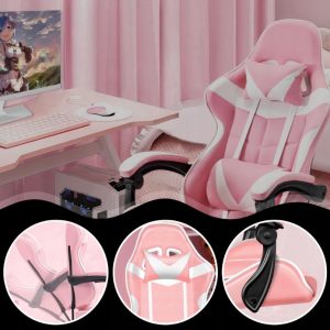 ✅РЕГУЛЮВАННЯ НАХИЛУ З ЗАМКОМ – Крісло можна нахиляти в будь-якому положенні, забезпечуючи комфорт під час багатогодинної гри та роботи, забезпечуючи правильне розташування хребта. Ви можете зафіксувати положення, натиснувши важіль вниз. Нахил спинки дозволяє розслабитися і погойдатися, що благотворно впливає на кровообіг і знижує м’язову напругу. Відкидне крісло також можна використовувати для перегляду фільмів.