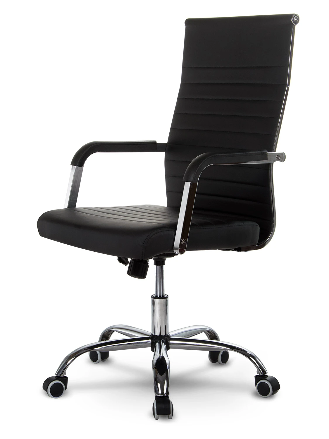 Спеціальна контурна спинка забезпечує комфортну підтримку поперекового відділу хребта, забезпечуючи максимальний комфорт використання. Хромована п’ятизіркова основа з широко розташованими коліщатками полегшує переміщення та надійно стабілізує все крісло.