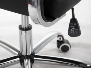 Спеціальна контурна спинка забезпечує комфортну підтримку поперекового відділу хребта, забезпечуючи максимальний комфорт використання. Хромована п’ятизіркова основа з широко розташованими коліщатками полегшує переміщення та надійно стабілізує все крісло.