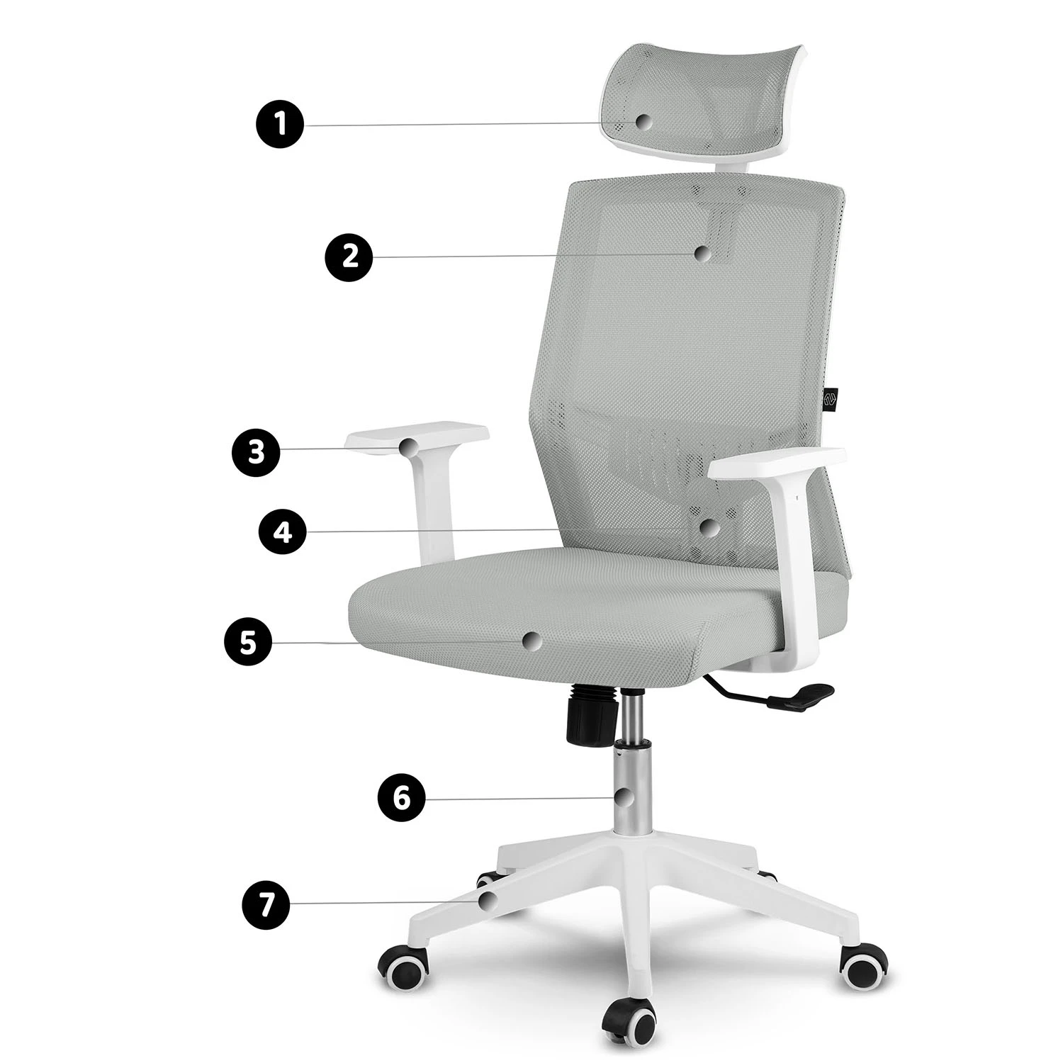 Завдяки винятковій увазі до деталей це крісло стане прикрасою будь-якого інтер’єру. Спинка з міцної мікросітки поєднує в собі візуальну легкість і гарантію довговічності в одному предметі меблів, а регульований підголівник дозволяє регулювати крісло під зріст користувача.