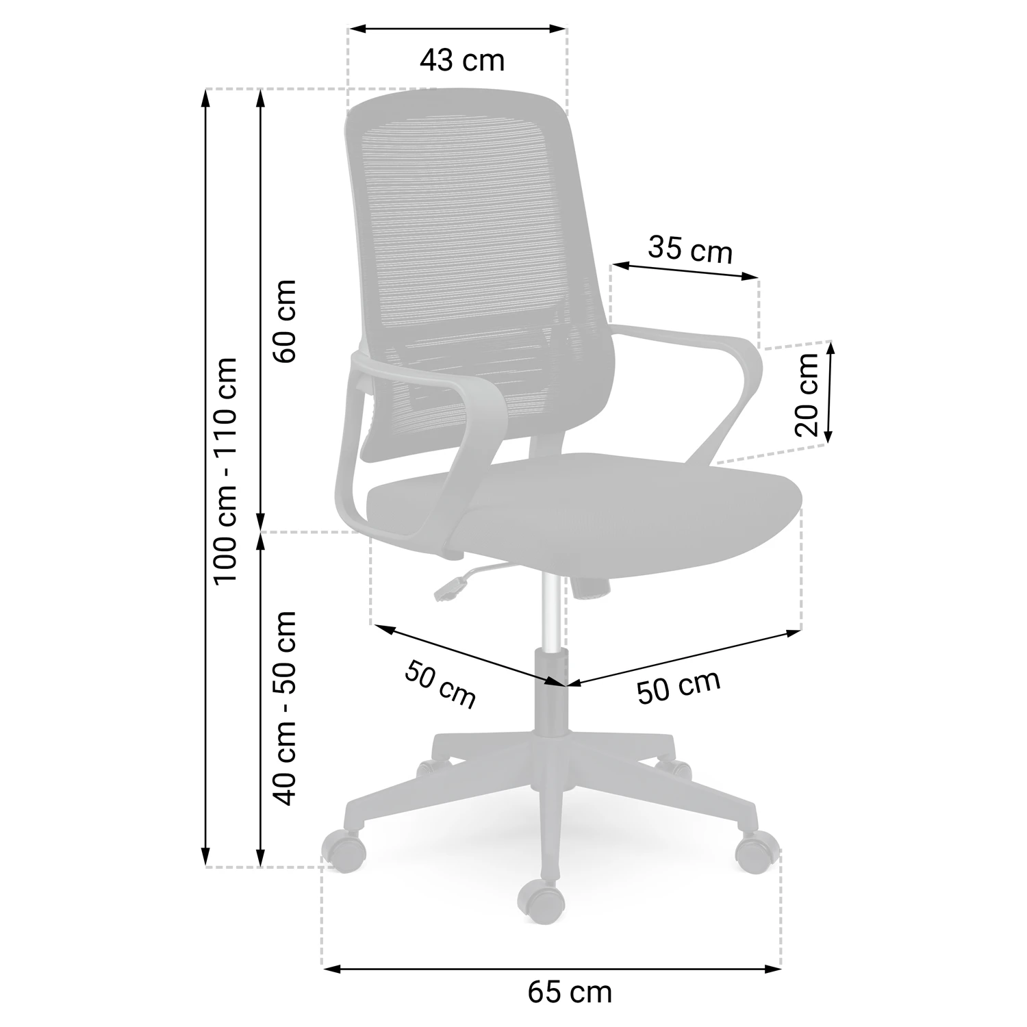 - максимальна загальна висота: 110 см