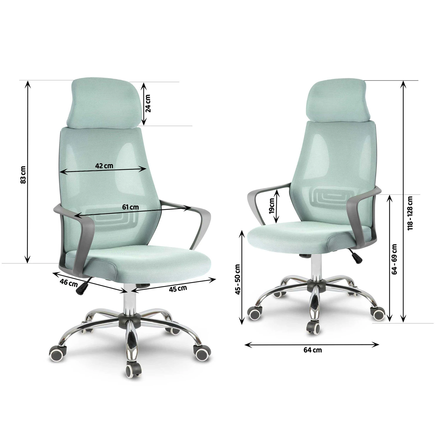 - загальна ширина: 64 см