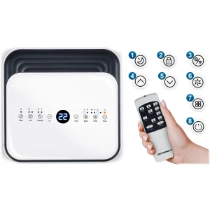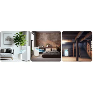- СУШІННЯ – Зменшує вологість повітря, усуваючи відчуття задухи та запобігаючи утворенню цвілі та іншим проблемам, пов’язаним із надлишком вологи.